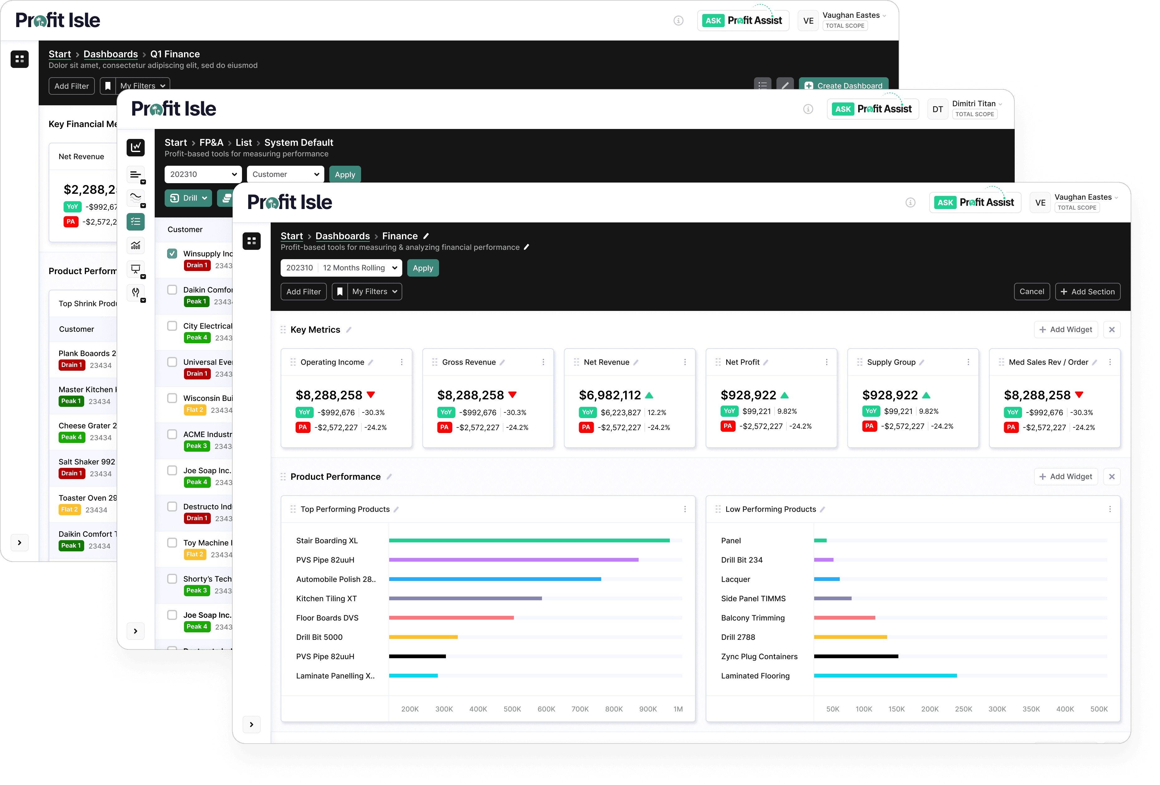 Profit Isle helps finance move from rebuilding analysis to enabling decisions.